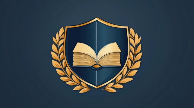 Open Book and Laurel Wreath School Shield Logo for Knowledge and Achievement