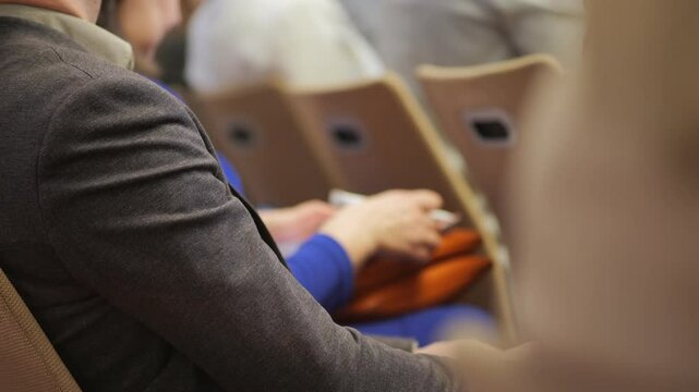 Translator at UN assembly professional suit translating global speeches
