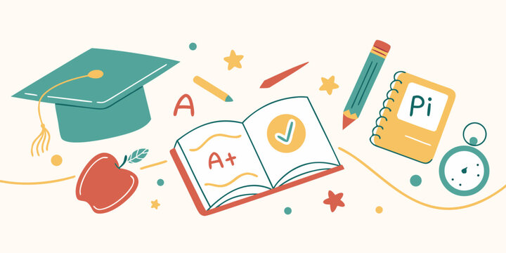 education learning academic achievement illustration school graduation textbook apple study success grades science mathematics excellence