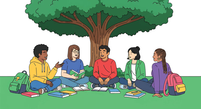 Students cheating with AI, AI-assisted cheating. Impact of ChatGPT on academic integrity & education. AI-driven cheating among students. Cheating in school. Illustration created with Generative AI.