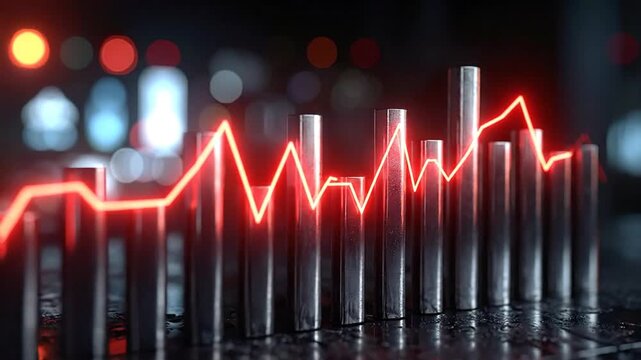 Financial Market Trend Analysis and Investment Growth with Red Line Graph