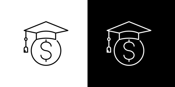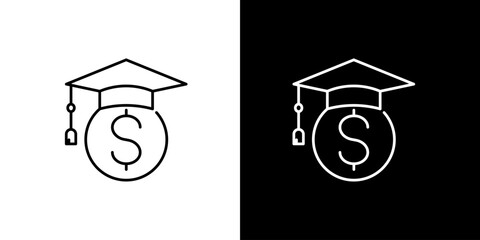 Graduation cap with dollar coin line icon. Symbolizing educational finance, student loans, scholarships, and the investment in academic success and future