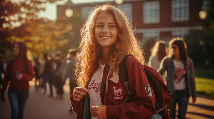 young confident female college student smiling while looking at the camera showcasing her vibrant student life and academic journey