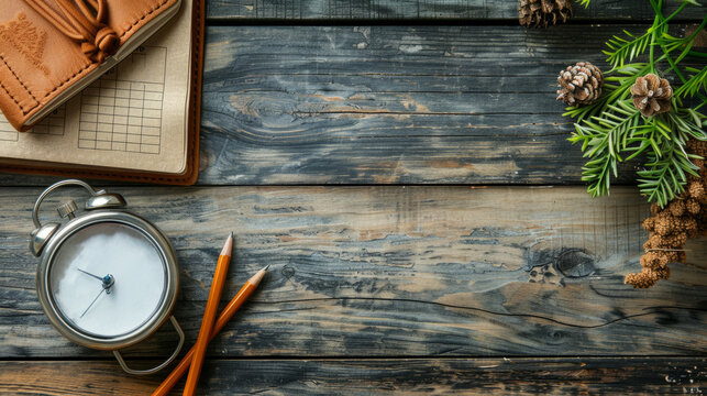 Colorful School Supplies Arranged Around an Open Notebook