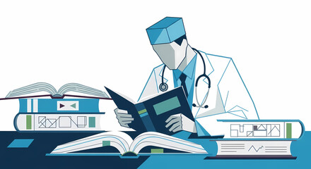 Focused medical professional intensely studying healthcare literature, symbolizing the continuous pursuit of knowledge and academic rigor essential for professional development and advancements