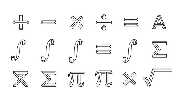Set of mathematical symbol icons vector line art glyphs for education and science isolated on white background