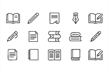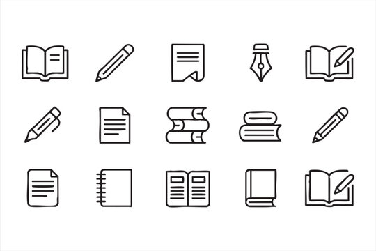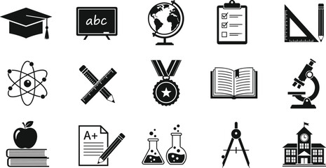 Educational icons representing learning, teaching, and academic achievements in a simplified style for digital use
