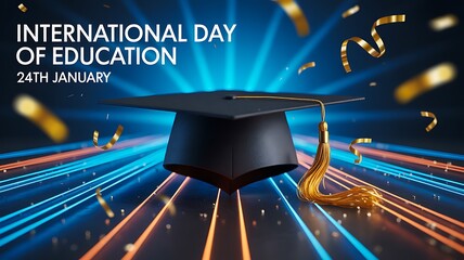 International day of education concept with graduation cap and motion