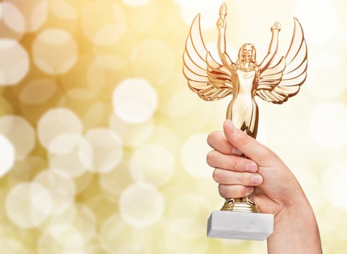 Golden Oscar Statue Award Isolated on White Background. Generative AI