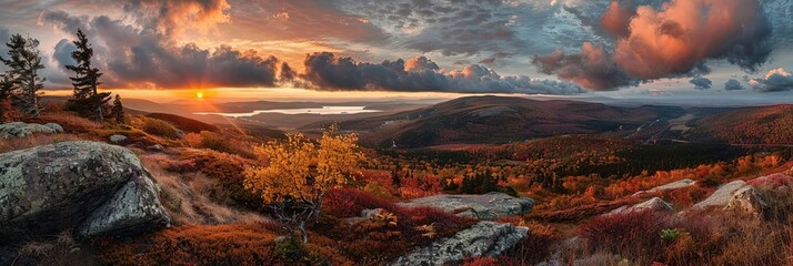 Autumn colors at the coastal cliffs of Acadia National Park in Maine under a moody sky