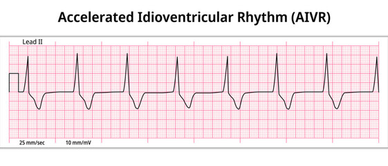 ECG Accelerated Idioventricular Rhythm - 8 Second ECG Paper - Electrocardiography Medical Vector Illustration