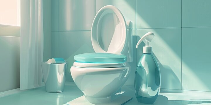 This bathroom exudes a clean, minimalistic design with teal accents that bring color and style to the space.