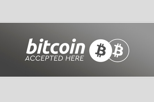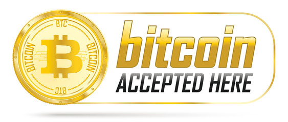 Bitcoin accepted here. Bitcoin BTC Logo accept payment by crypto currency. Virtual digital money Cryptocurrency concept