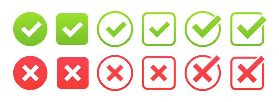 Green check mark and red cross symbols for yes no correct incorrect choices approval rejection vector