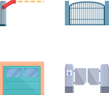 A red and white striped barrier gate in the closed position, with long shadow effect. Concept for access control, entry restriction, or security. Blue background. (flat design)