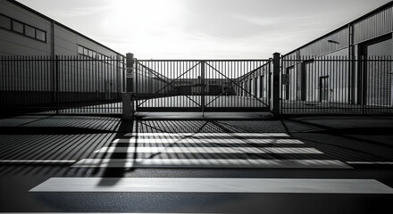 Security camera and automatic barrier gate for security in a restricted area, ensuring safety and monitoring access to the parking lot or private property