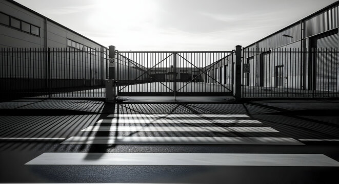 Modern security gate with wireless connectivity and shield icon, ensuring secure access control and data protection in a contemporary setting