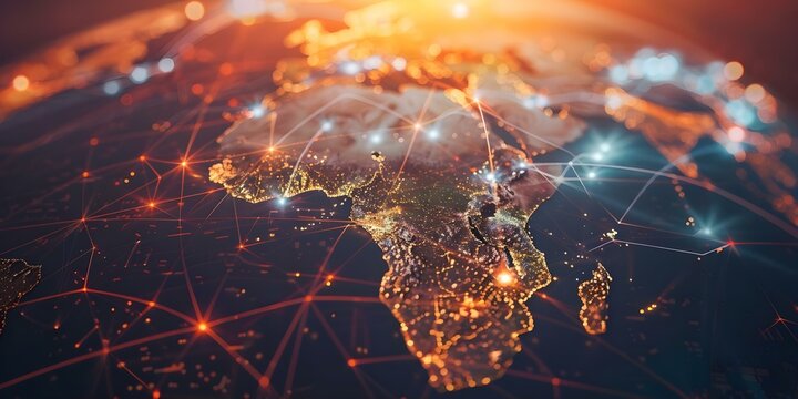 Connecting Africa and Asia through a Global Digital Map for High-Speed Data Transfer. Concept Data Transfer, Global Connectivity, Digital Mapping, Africa, Asia
