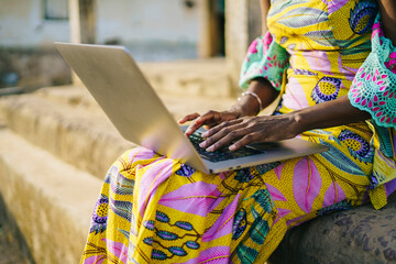 Unrecognizable African girl browsing laptop