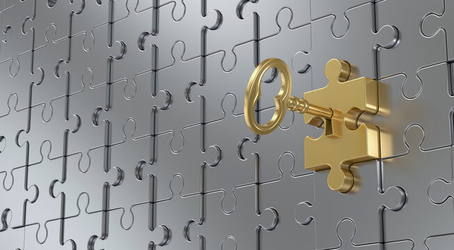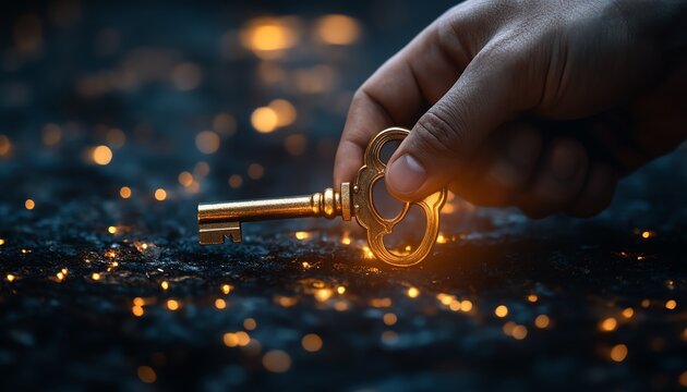 Businessman unlocking the key to financial success, opportunity achievement, 3D strategy background, security access, and goal development in business