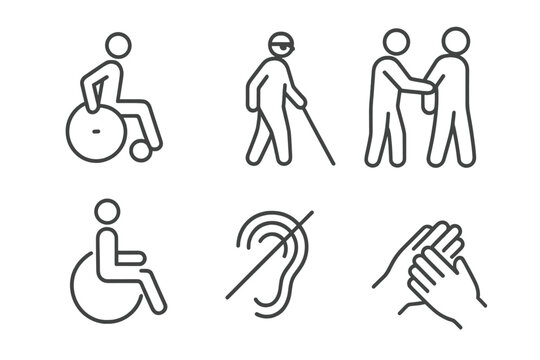 Inclusive Accessibility Icon Set – Disability, Wheelchair, Hearing, and Visual Aid Symbols Collection