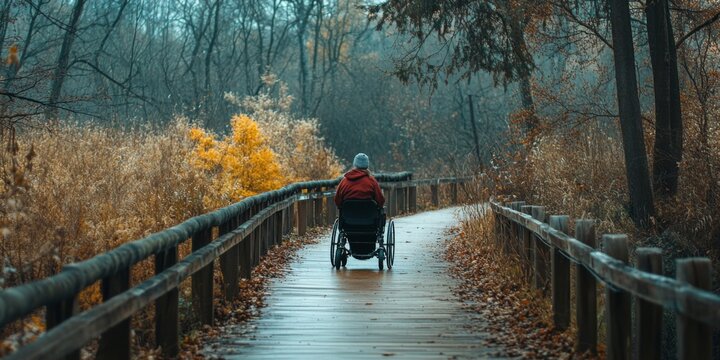 A person with a disability enjoying an accessible nature trail or scenic viewpoint