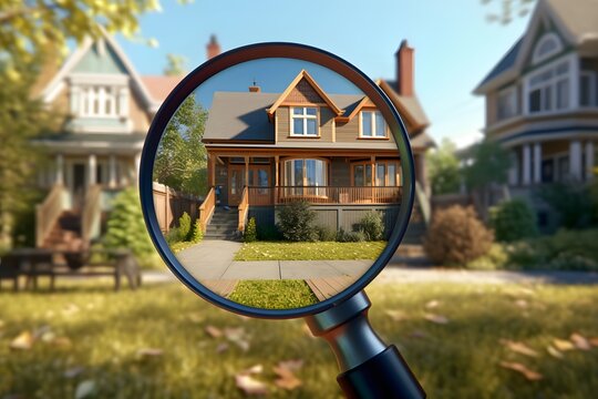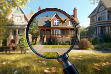 Magnifying glass zooming on a house