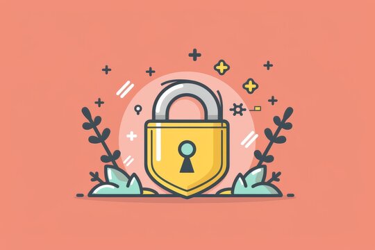 Simplistic padlock icon over an orange digital landscape, illustrating accessible and user-friendly cybersecurity solutions.