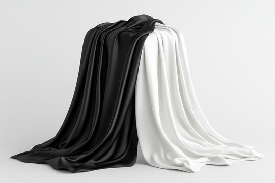 Side view of a black and white twill silk scarf mockup