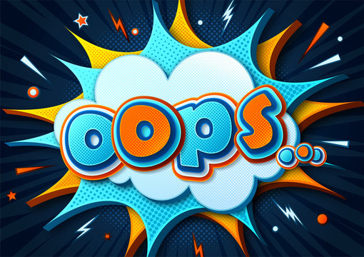 Comic pop art splash explosion background. Speech bubble with expression text space. Bright dynamic cartoon illustration in retro pop art style. Layout blank template with dots, clouds and stars