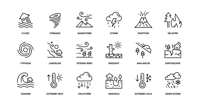 Minimalist Icons of Natural Disasters with Editable Stroke