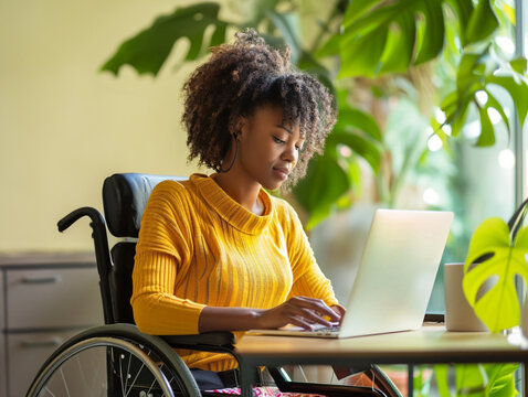 A person with a motor disability working in an inclusive workplace