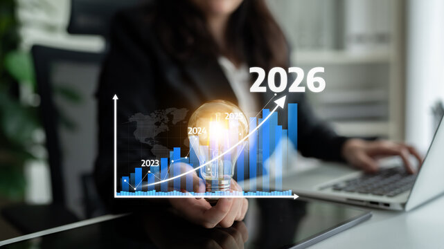 A woman sits at a desk working on a laptop with a checklist displayed on a large screen behind her, accompanied by a plant and a steaming cup.