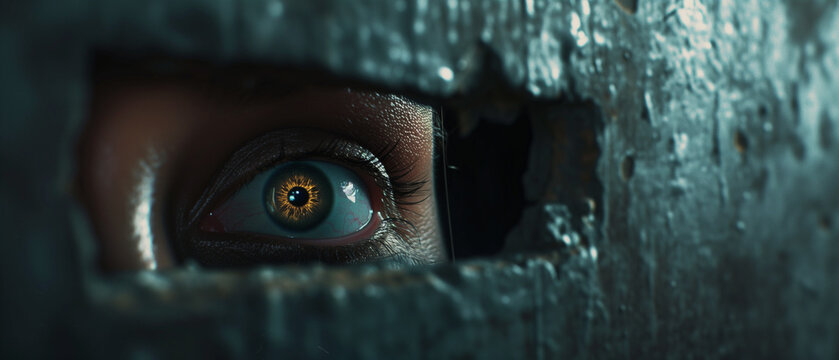 Two professional thieves looking through window to check house before break-in at night