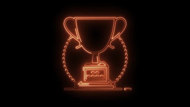 Neon trophy glowing animation with chain on black background ideal for awards and achievements