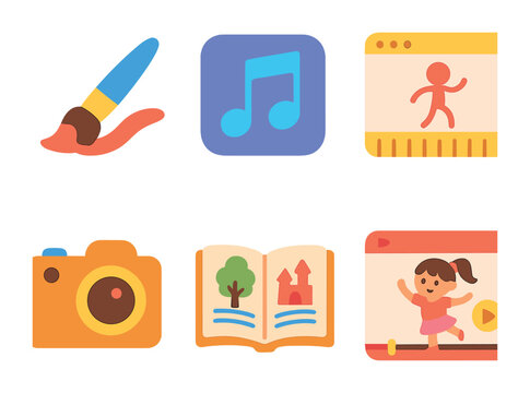 Creative Kids' Tools. Flat vector mini-illustrations Creative skills online in colors children's illustrations