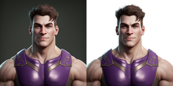 Profile picture of a skilled caucasian male athlete in purple sportswear. Show your dedication and determination with this dynamic action shot. solid and transparent PNG option, Generative AI.