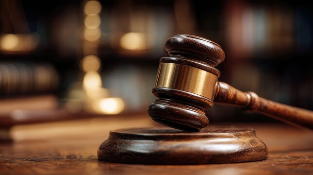 a legal setting with a gavel and a set of law books in the background, suggesting an environment where decisions are made in accordance with the law