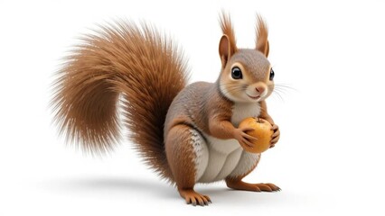 squirrel with nut or accorn isolated on white