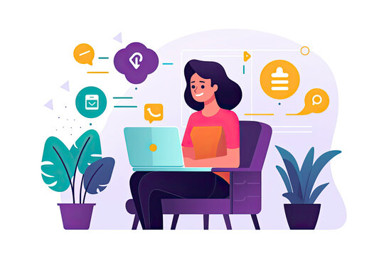 Woman enjoys online banking for work, business or personal needs. Businesswoman or remote worker sitting at desk at home, using laptop computer, managing her bank account and transferring money online