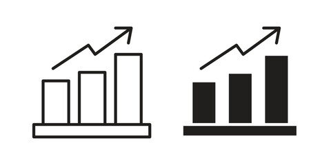 Sales growth icons line and solid version, outline and filled vector design set