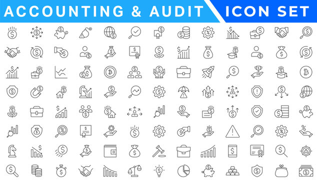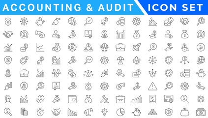 Accounting and audit icon collection. Business symbols. Editable stroke.