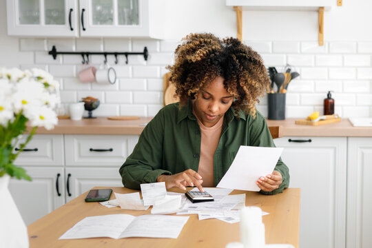 Women have severe stress due to debt. woman  is sitting at the press of various expense calculators on invoices and credit card debt. woman are no money with the debt to pay monthly. Debt concept.