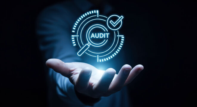 Businessman holding digital hologram of green compliance check mark, certification concept