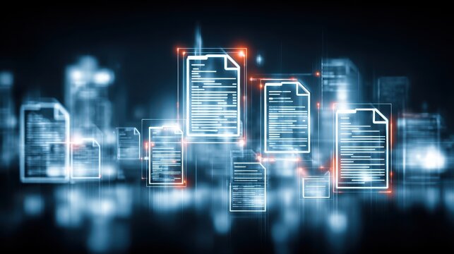 A sleek digital workspace where tax accounting finance business filing systems flow online with futuristic clarity