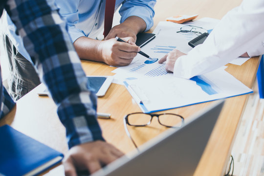 Business concept. Business people discussing the charts and graphs showing the results of their successful teamwork
