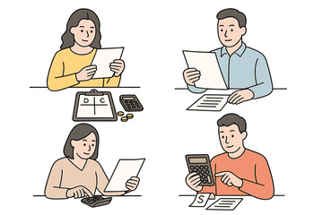 Diverse people calculating expenses, reviewing financial documents, and handling accounting tasks
