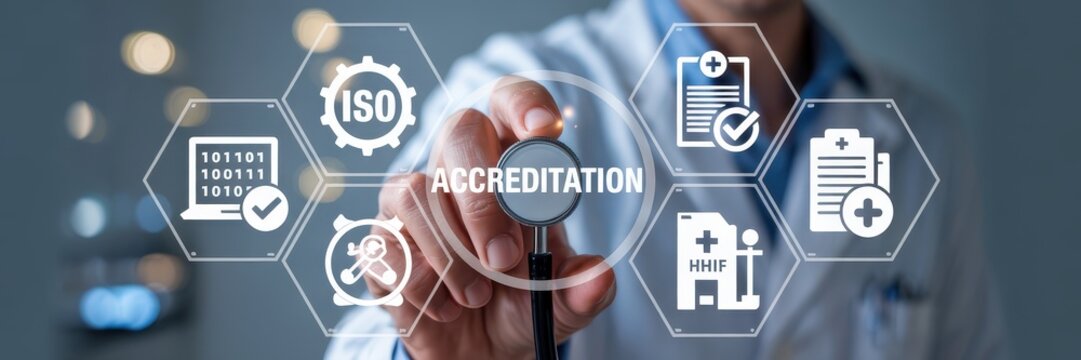 Concept of medical accreditation. Accredited Healthcare.