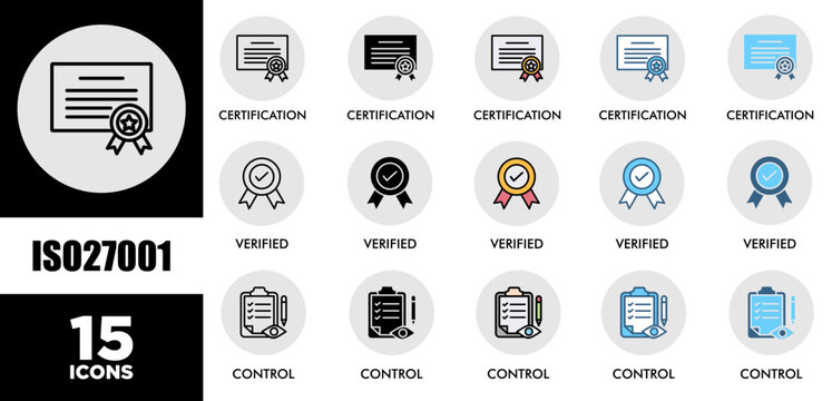 ISO27001 icon set with various styles and colors of corporate sustainability performance for investment screening