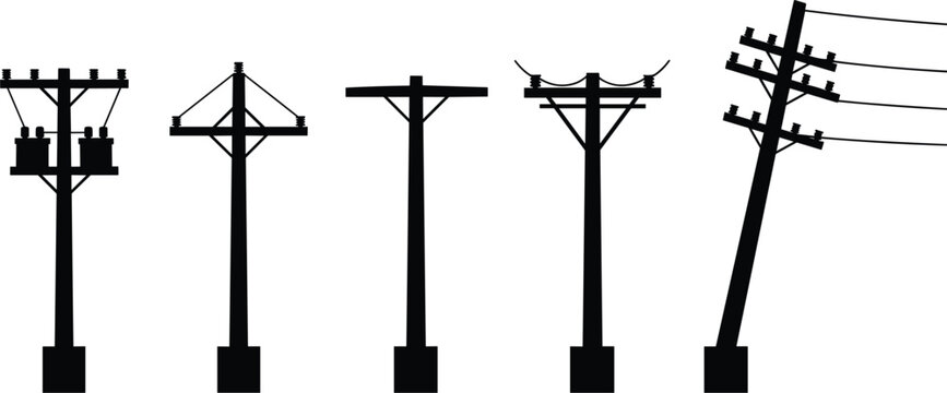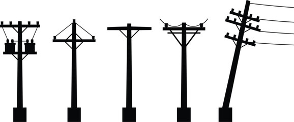 Silhouette collection of utility poles with electrical equipment power pole electricity pole